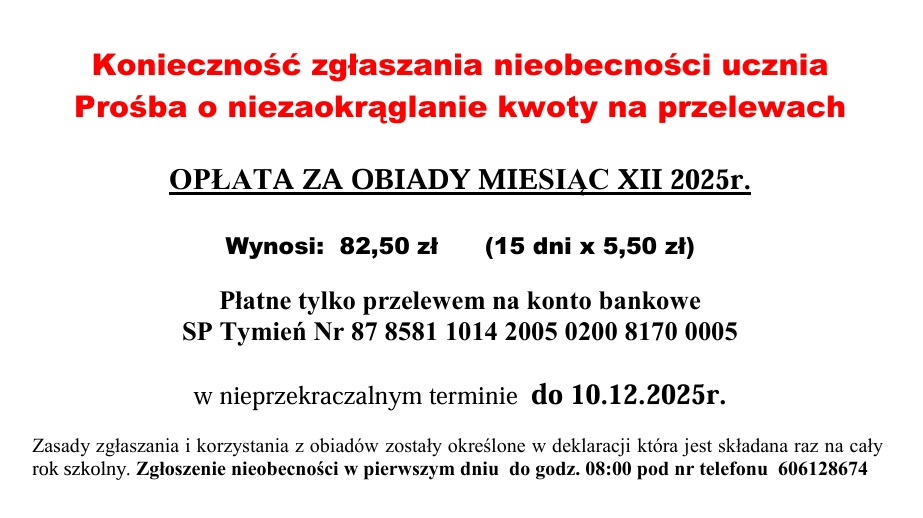 Opłata za obiady - grudzień