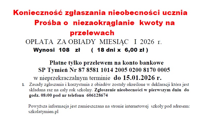 Opłata za obiady - styczeń